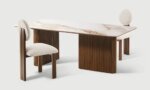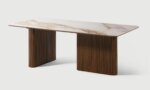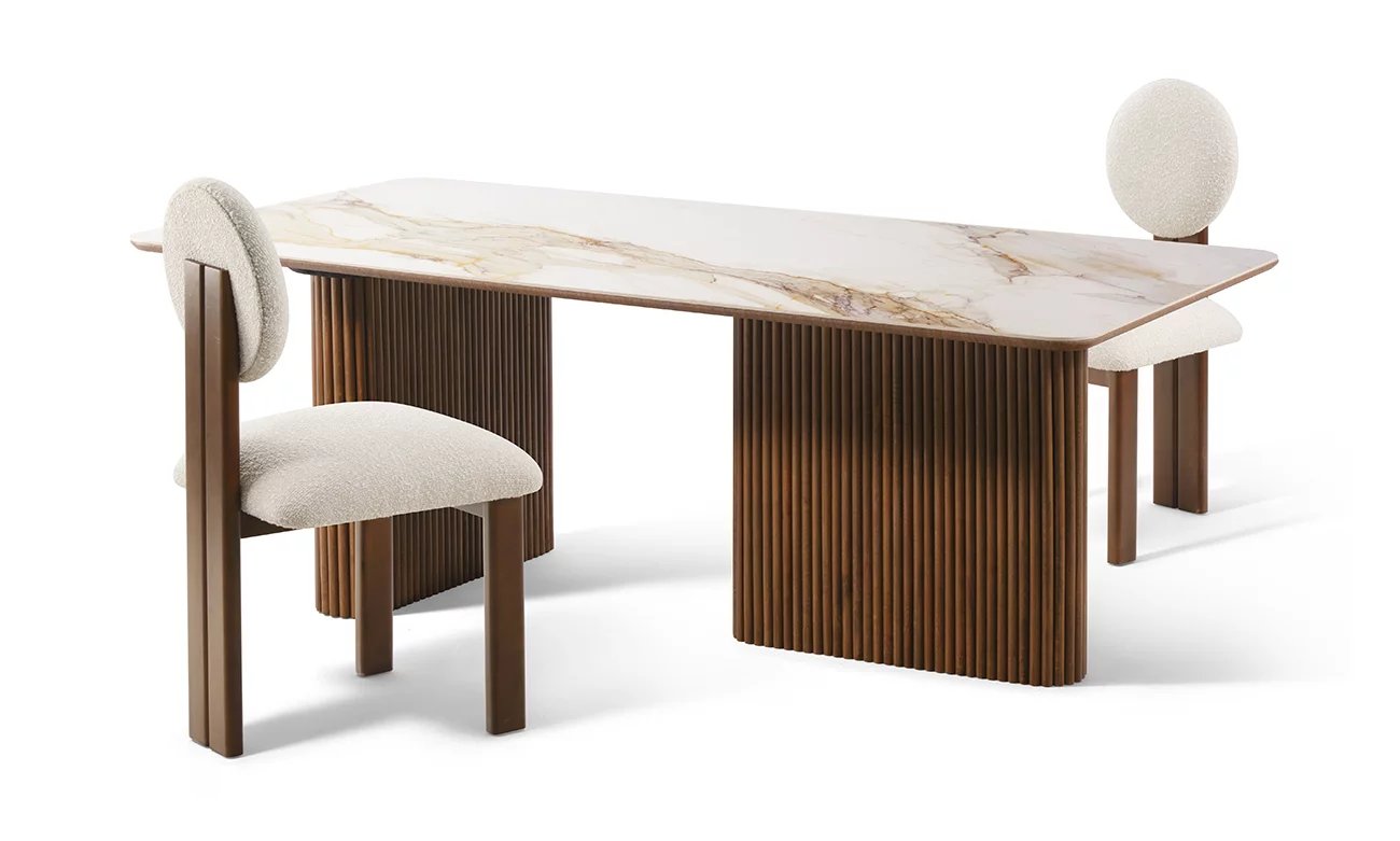 La Table à Manger César se démarque par son charme incomparable. Dotée d’un plateau en céramique reposant sur un support en bois noyer, cette pièce marie fonctionnalité moderne et raffinement intemporel, idéale pour une expérience culinaire luxueuse.