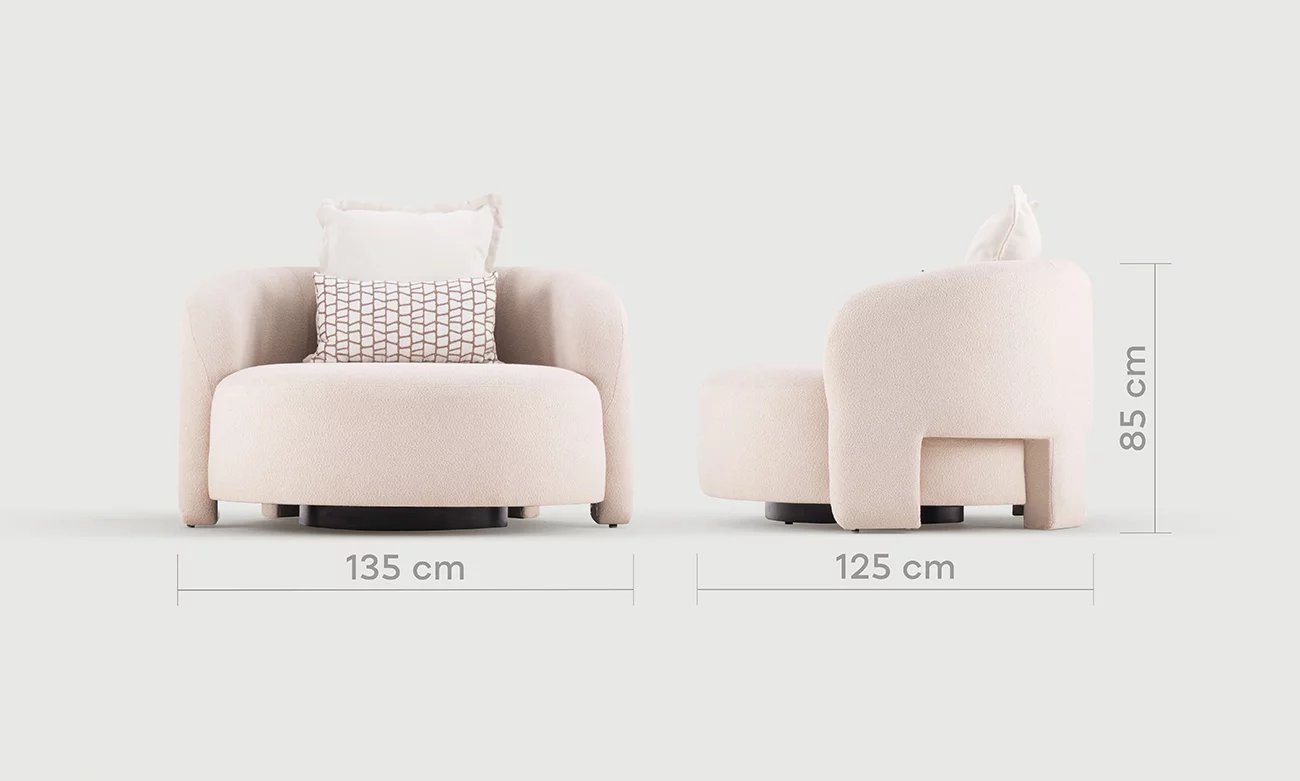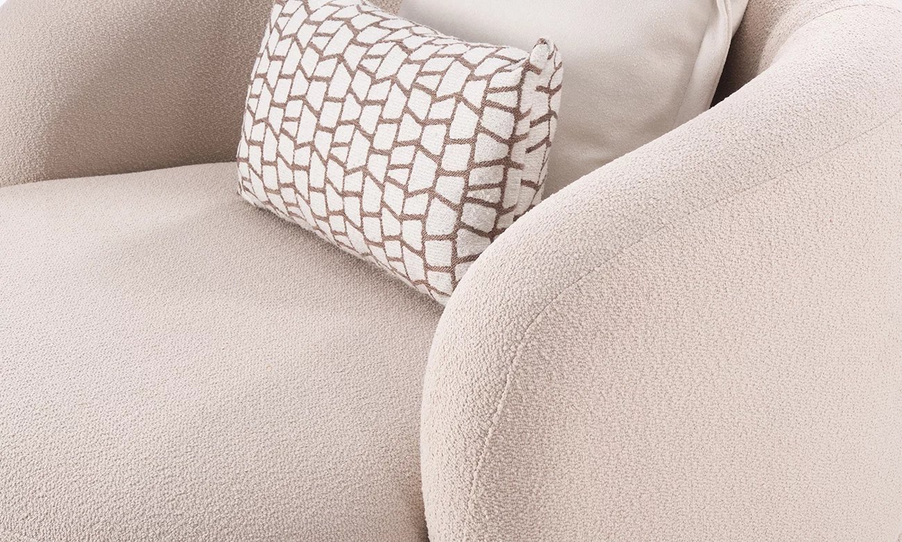 Plongez dans le luxe et le confort avec le fauteuil TWILIO 1 Place, une pièce maîtresse qui allie élégance et fonctionnalité. Sa structure en bois massif garantit une durabilité exceptionnelle, tandis que les sangles élastiques entrecroisées offrent un soutien optimal pour une assise confortable. Le rembourrage en ressorts ensachés et en mousse HR de Densité 33 crée une expérience d’assise moelleuse et enveloppante, parfaite pour se détendre après une longue journée. Revêtu de bouclette, ce fauteuil apporte une touche de luxe et de sophistication à votre espace. Avec deux coussins décoratifs inclus, le fauteuil TWILIO 1 Place est non seulement confortable, mais aussi élégant et stylé. Pour mettre en valeur le fauteuil TWILIO 1 Place, jouez avec les accessoires et les détails décoratifs. Ajoutez une couverture douce et quelques coussins aux motifs et textures variés pour créer une ambiance chaleureuse et accueillante. Placez une lampe d’appoint à côté du fauteuil pour créer un coin lecture confortable et cosy. Vous pouvez également utiliser un tapis moelleux sous le fauteuil pour délimiter visuellement l’espace et ajouter une touche de confort supplémentaire. Avec le fauteuil TWILIO 1 Place, transformez n’importe quel coin de votre maison en un havre de détente et de style.