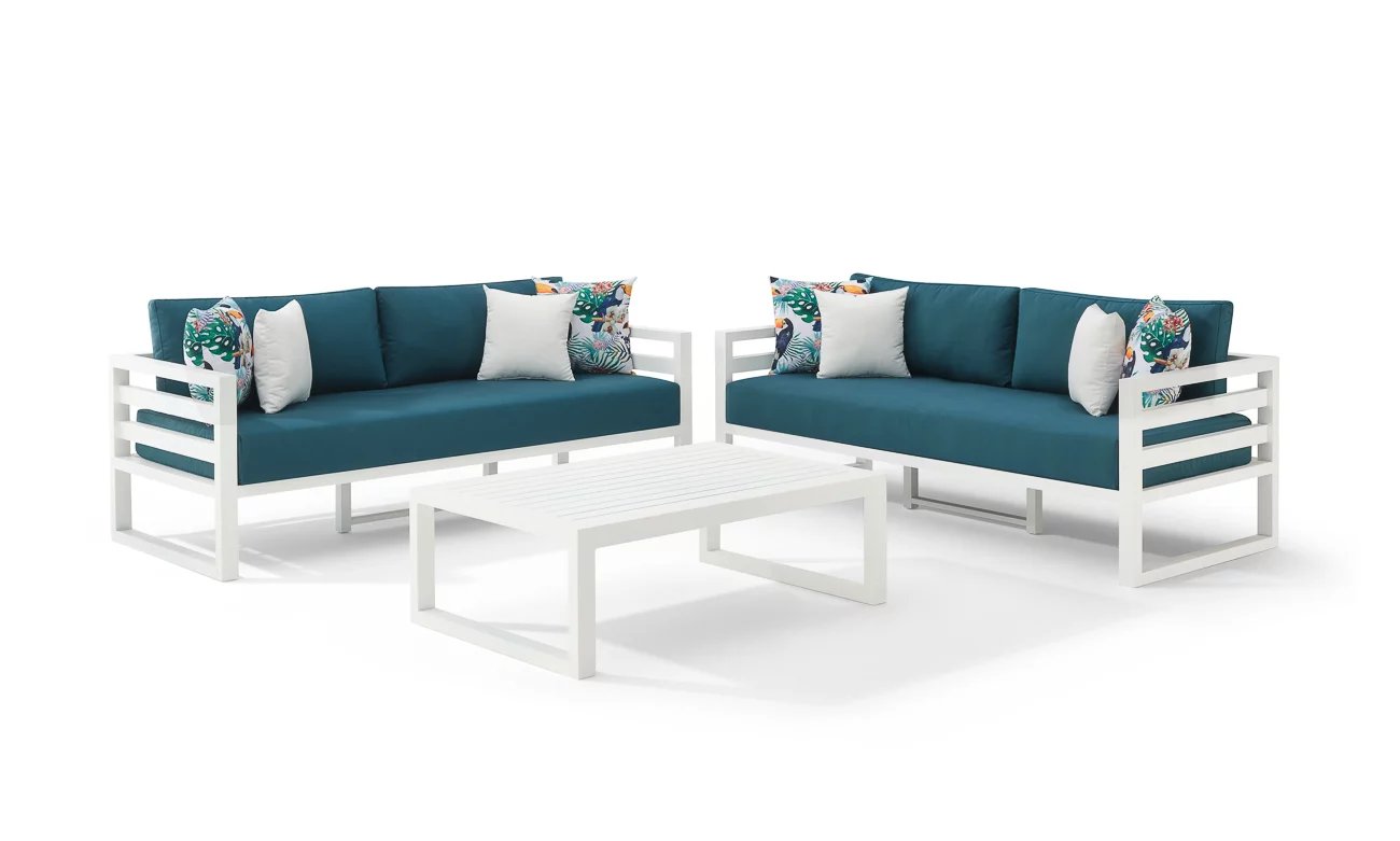 Signé Sketch, le salon de jardin Linda fait aluminium vous charmera à coup sûr ! Sa structure droite, et son design épuré vous assure un bien-être optimal pour des moments de détente estivaux. Ses coussins, son assise et son dossier sont revêtue d’un tissu outdoor traité anti tâches pour un entretient facile. De plus ils sont rembourrés en mousse haute résilience pour vous garantir un grand confort. Linda donnera à votre outdoor une touche de punch et d’élégance.