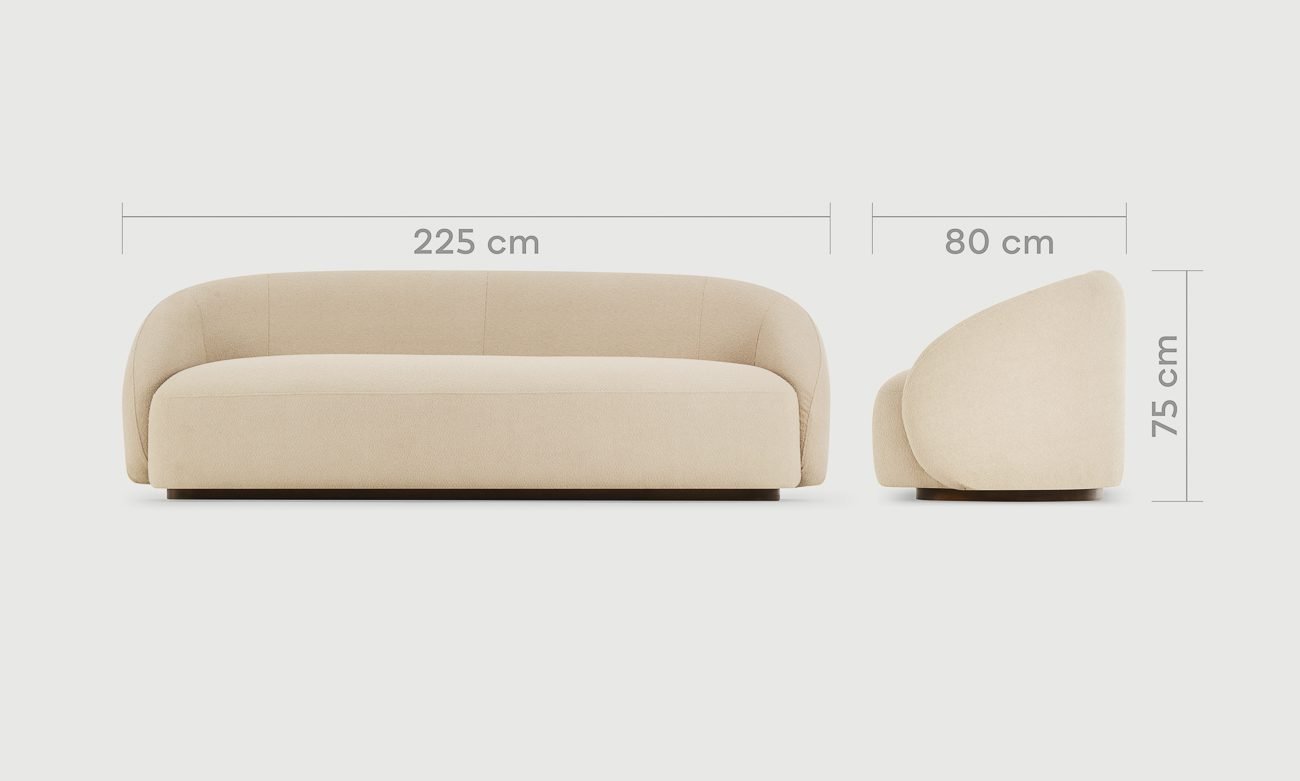 Le canapé Luna à 3 places s est le choix parfait pour un intérieur minimaliste et épuré. Fabriqué avec des matériaux de qualité supérieure, son design contemporain offre une expérience de confort unique grâce à son assise bien rembourrée. Les lignes épurées et la silhouette élégante font de ce canapé une pièce de choix pour tout espace de vie moderne. Le canapé LUNA est bien plus qu’un simple meuble – c’est une expérience luxueuse à part entière. Doté d’une structure en bois massif et de sangles élastiques entrecroisées, ce canapé offre un soutien exceptionnel et une durabilité à toute épreuve. Son rembourrage en mousse HR35 italienne, ABS et D22, enveloppe votre corps dans un confort moelleux, tandis que le revêtement en bouclette ajoute une touche de raffinement à votre espace. Avec son piètement en hêtre massif finition wengé, ce canapé allie élégance et robustesse pour créer un lieu de détente ultime dans votre salon.