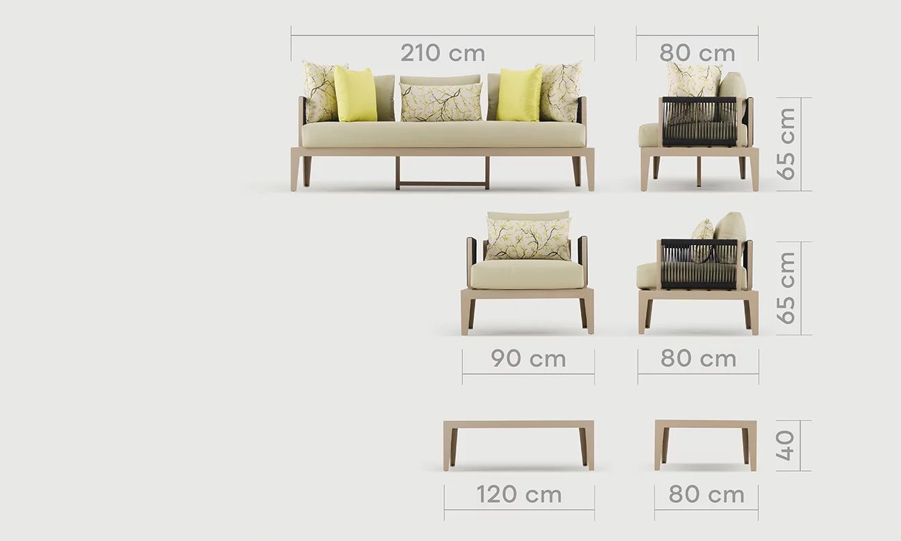 Conçu pour le confort, l’ensemble MARBELLA est doté d’une mousse haute résilience (HR) et d’un tissu imperméable, garantissant une assise moelleuse et un entretien facile. Ses coussins résistent aux intempéries, vous assurant des moments de détente en toute saison. Pour sublimer ce mobilier, pensez à l’associer avec des accessoires déco comme des plaids douillets et des coussins colorés pour une touche de chaleur. Ajoutez également des plantes en pots aux textures variées autour de l’ensemble pour créer un coin jardin verdoyant et accueillant. Avec MARBELLA, transformez votre extérieur en un véritable havre de paix.