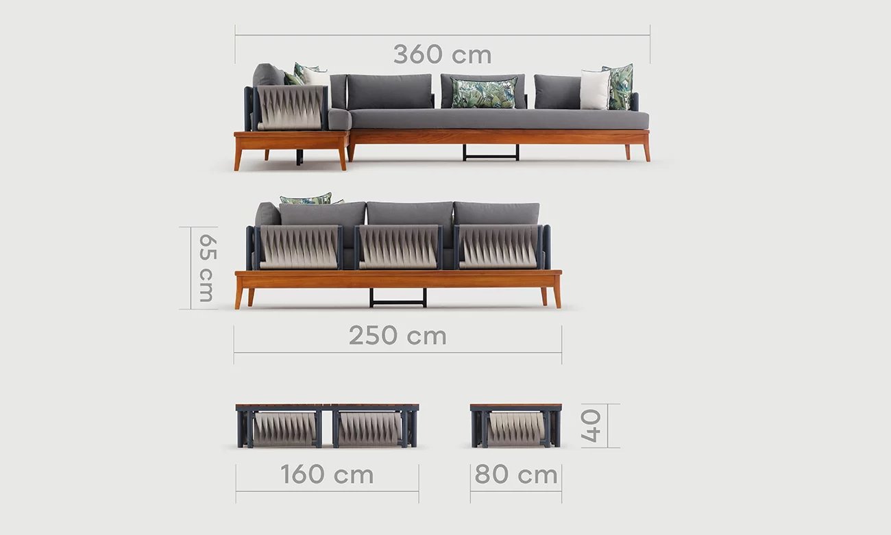 Le salon d’extérieur en L Marbella est une véritable œuvre d’art conçue pour allier confort et esthétique. Sa structure en bois d’Irokko, renforcée par des éléments en aluminium et des cordes élégantes, lui confère une solidité et une durabilité exceptionnelles. Ce salon offre un soutien incomparable grâce à sa mousse de densité MG 4000 HR, qui épouse parfaitement les formes du corps pour une expérience de détente ultime. Revêtu d’un tissu anti-tache, Marbella est non seulement raffiné mais aussi pratique, vous assurant un entretien minimal tout en maintenant son aspect impeccable au fil du temps.