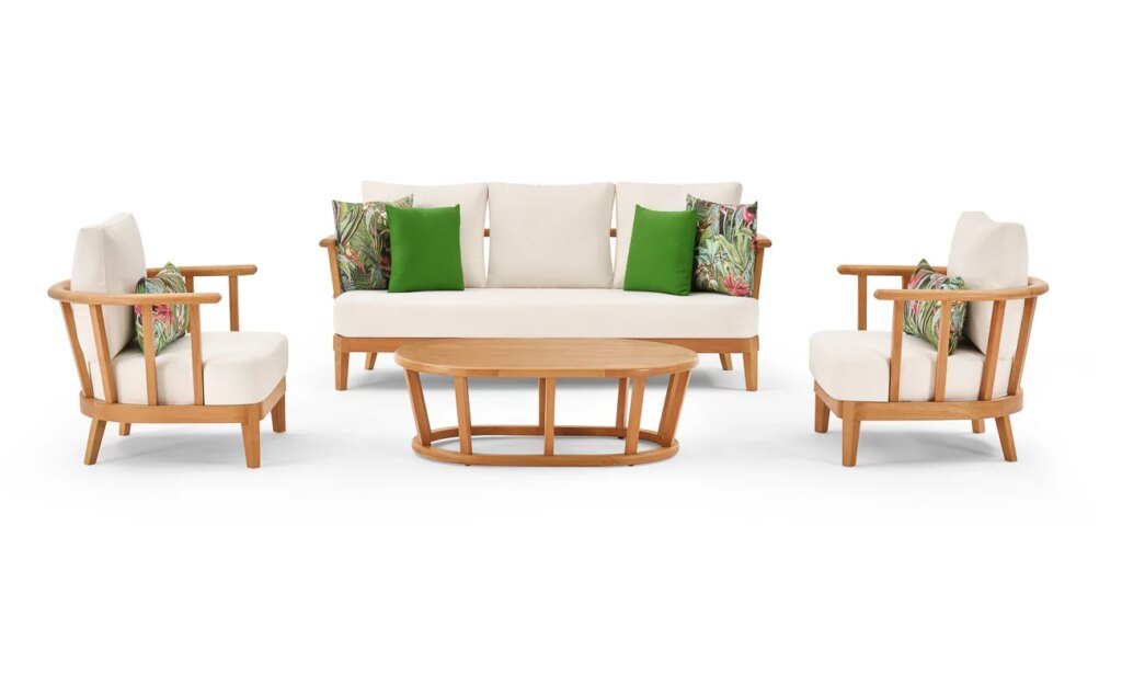 se distingue par sa structure en bois massif Iroko, un matériau noble et résistant, parfait pour l’extérieur. Ce bois, naturellement durable et esthétiquement raffiné, apporte une touche d’authenticité et de chaleur à vos espaces extérieurs. Que ce soit pour une terrasse, un jardin ou un balcon, cet ensemble allie robustesse et élégance pour sublimer votre environnement extérieur.