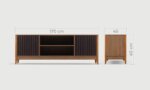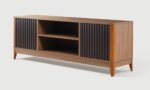 Avec ses pieds en bois iroko, le meuble TV MIRAGE offre une base solide et esthétique. Pour sublimer ce meuble, pensez à harmoniser les couleurs de votre salon avec des tons naturels et terreux. Placez un tapis en fibres naturelles ou à motifs géométriques devant le meuble pour ajouter de la profondeur à votre décoration. Des accessoires en métal noir ou en laiton, comme des lampes ou des cadres photo, peuvent créer un contraste chic et moderne. Ajoutez des plantes d’intérieur de différentes tailles autour du meuble pour introduire de la verdure et un sentiment de fraîcheur. Enfin, optez pour des éléments décoratifs en bois ou en céramique sur le meuble pour compléter le look et créer un espace accueillant et bien équilibré.