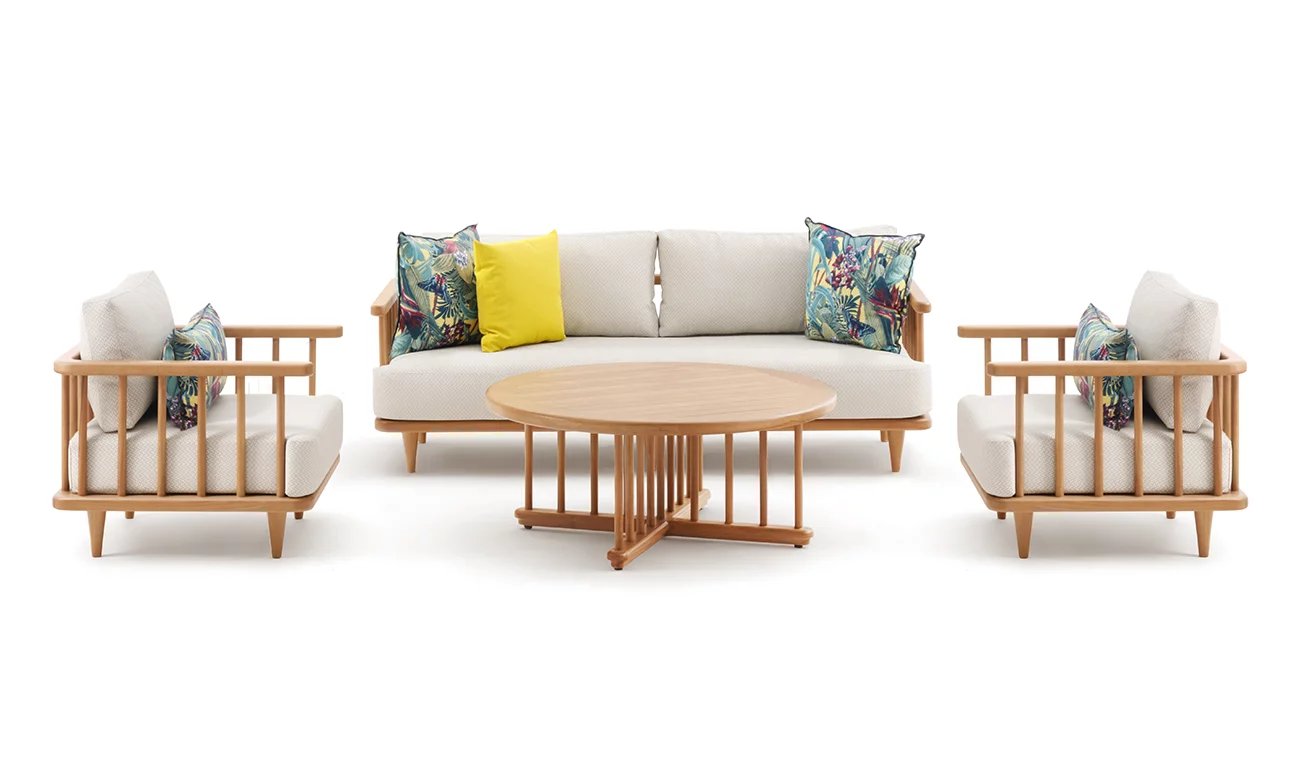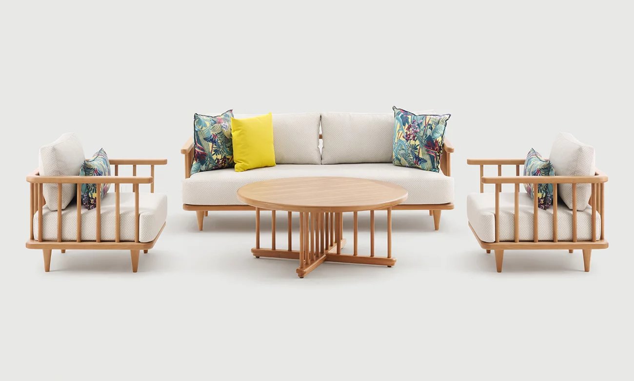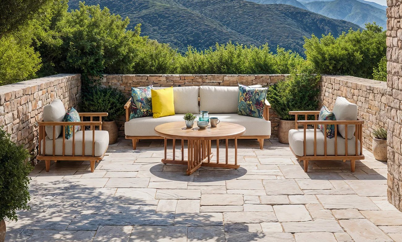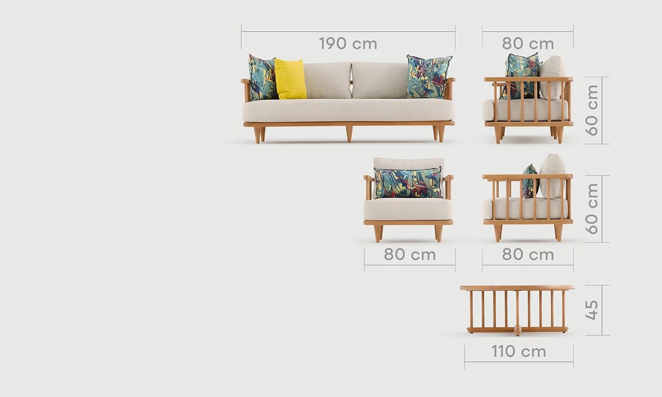 Doté d’une mousse haute résilience, l’ensemble Revira assure un confort d’assise inégalé. Son revêtement en tissu antitache facilite l’entretien, permettant à ce mobilier de conserver son allure impeccable au fil des saisons. Pour créer un espace encore plus accueillant, ajoutez quelques coussins aux motifs floraux ou aux couleurs vives, qui rehausseront la teinte noyer du bois. Disposez des plantes en pots autour du salon pour renforcer l’ambiance naturelle et apaisante. Revira s’intègre ainsi parfaitement à votre jardin, créant un coin cosy et tendance où il fait bon se détendre.