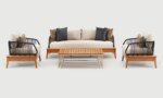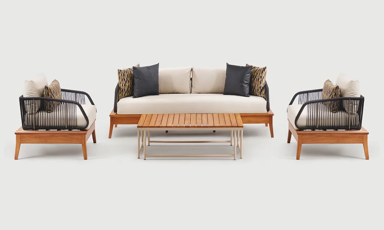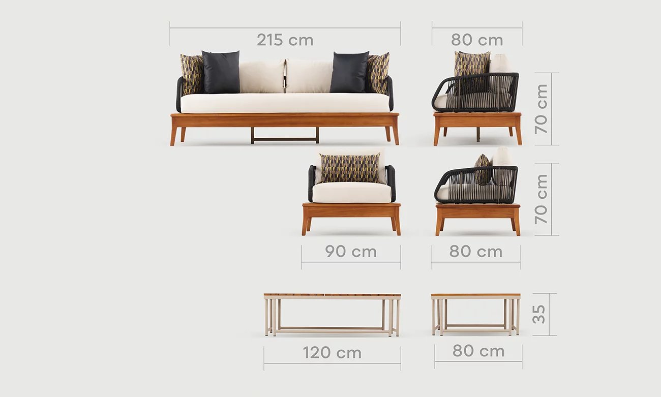 L’ensemble d’extérieur 3+1+1+TB Sydney est l’ultime fusion de confort et de durabilité pour vos espaces extérieurs. Avec une structure en bois Irokko et une finition laquée synthétique résistante à l’usure, cet ensemble allie style et robustesse pour faire face aux éléments extérieurs. La mousse HR et les éléments ABS garantissent un confort optimal, vous permettant de vous détendre en toute sérénité dans votre jardin ou sur votre terrasse, que ce soit pour un moment de lecture tranquille ou pour accueillir des invités en plein air.